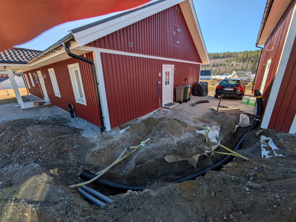 About a year ago we started the process of getting quotes for the drilling of the energy well and installation of a new heat pump. In the process, we’d also get rid of the separate heat pump in the garage and run pipes from the house to the garage so it also could use the same heating system. I attempted to figure out the power needed by the house and the garage in several different ways and landed on about 12kW at the “design outside temperature” which is -24C here. This in turn sets the size of the heat pump and the depth of the hole needed. 250m is the deepest hole commonly used, beyond that there are diminishing returns and it’s more efficient to drill two holes instead. 250m should be about right for us, maybe a little on the short side for a real cold winter, but we’ll have to see.